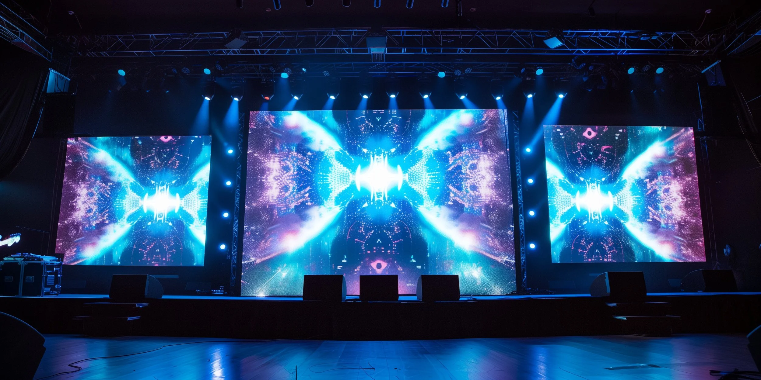 Confidence monitors are placed at the stage so presenters can view notes, current/next slides, program content, and timers. Our 55" confidence monitors include black dress kit
