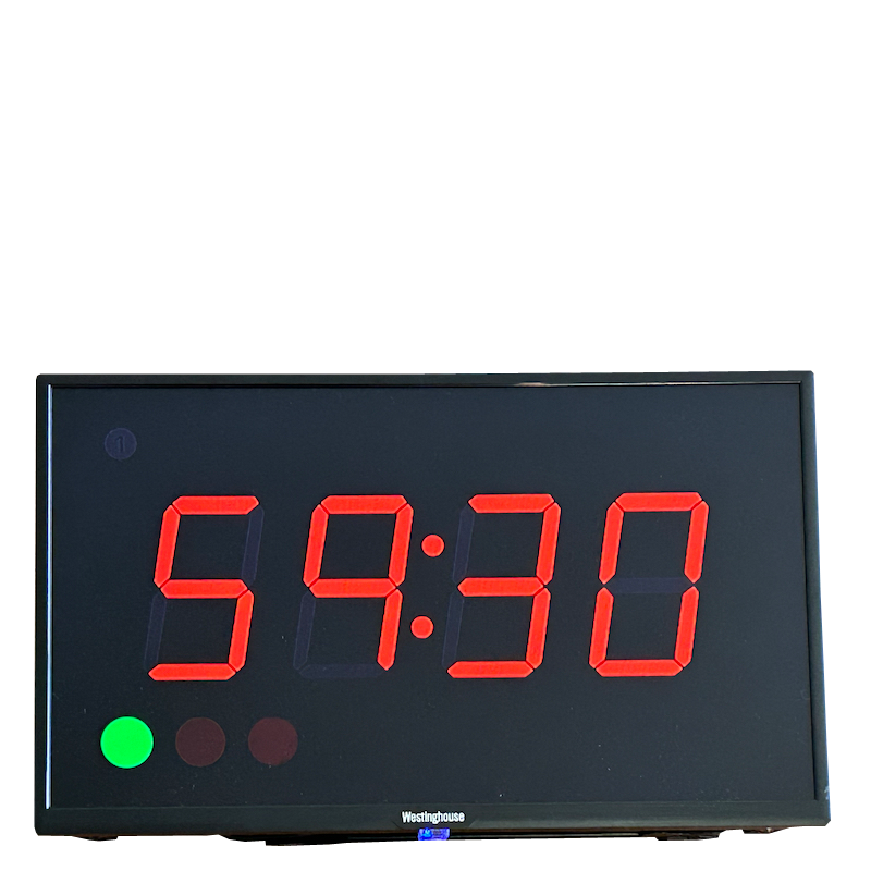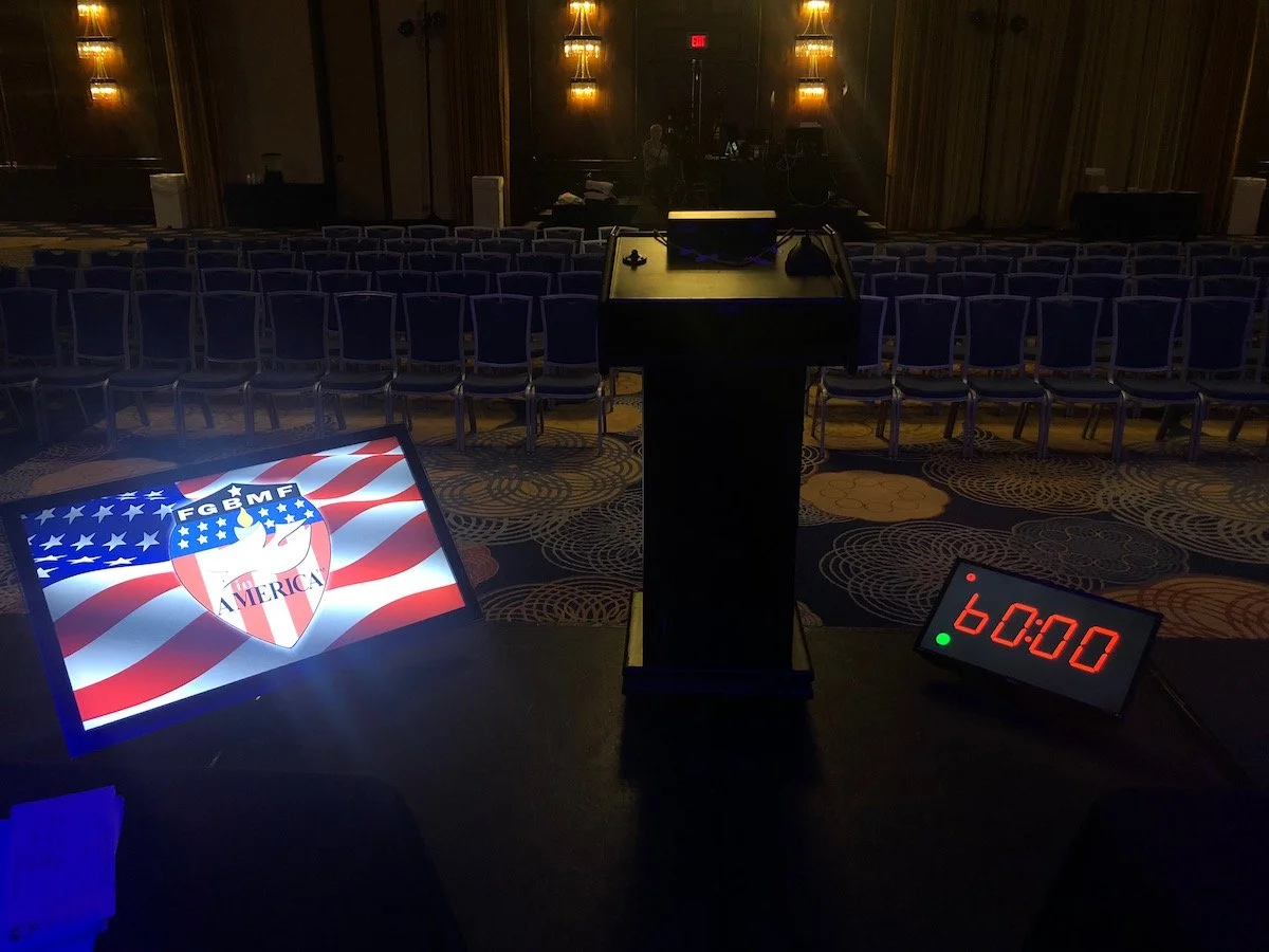 View notes, current slide, next slide, and program content. Our 55" confidence monitors include black dress kits.